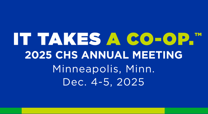 Join us at the CHS Annual Meeting, Dec. 4-5, in Minneapolis, Minn., for education sessions, business updates and CHS governance. Find the full agenda on the registration site. Hotel registration closes Nov. 14.